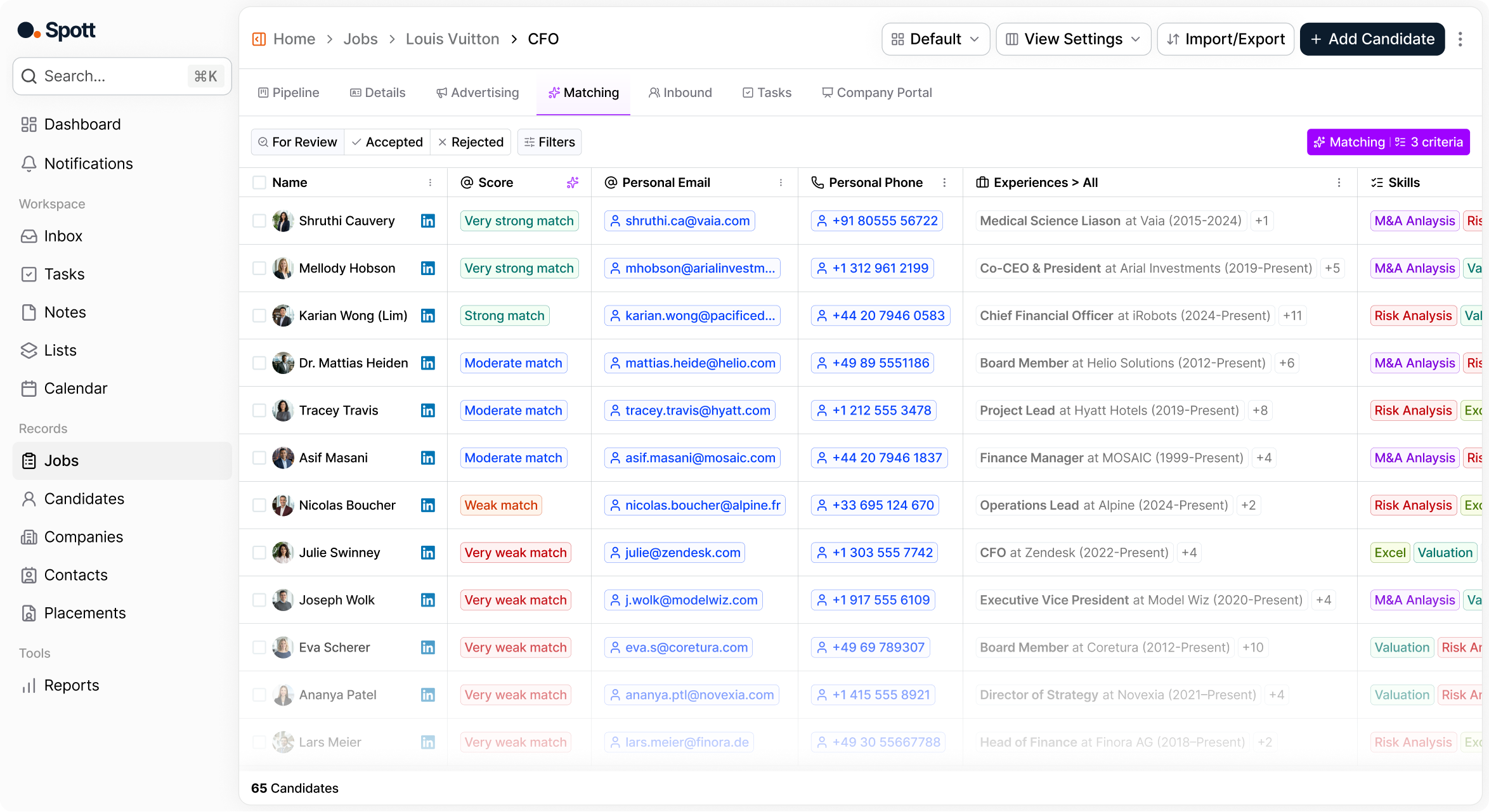 Spott shows exactly why candidates are matched, using real signals from your data.