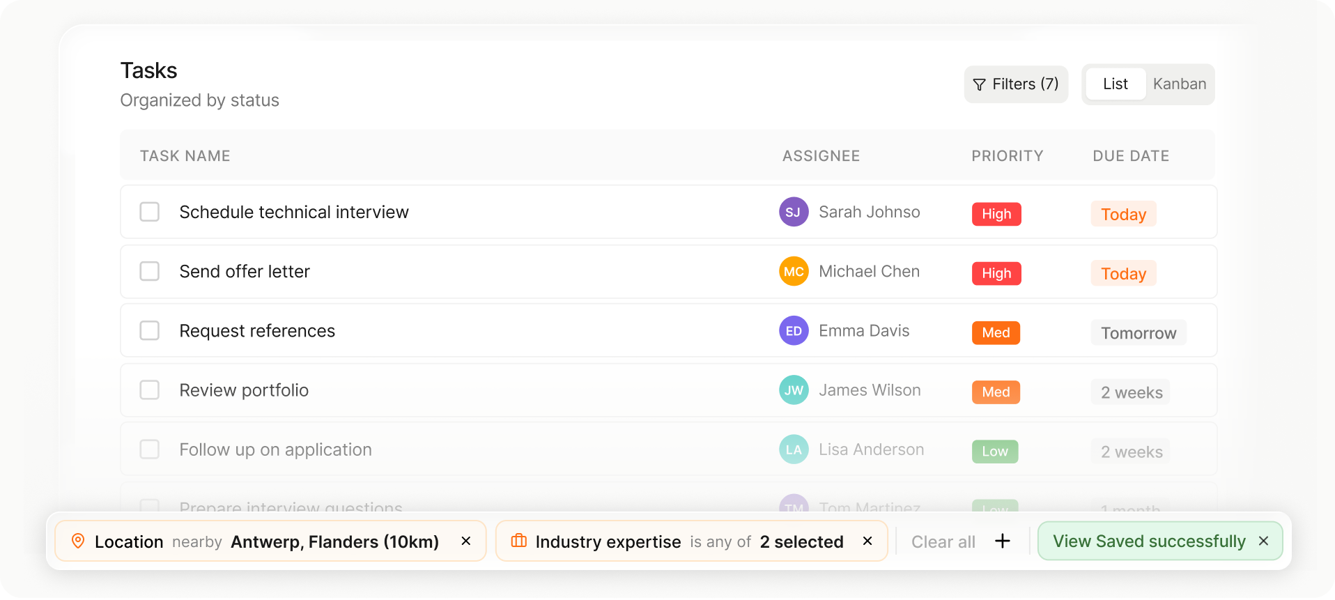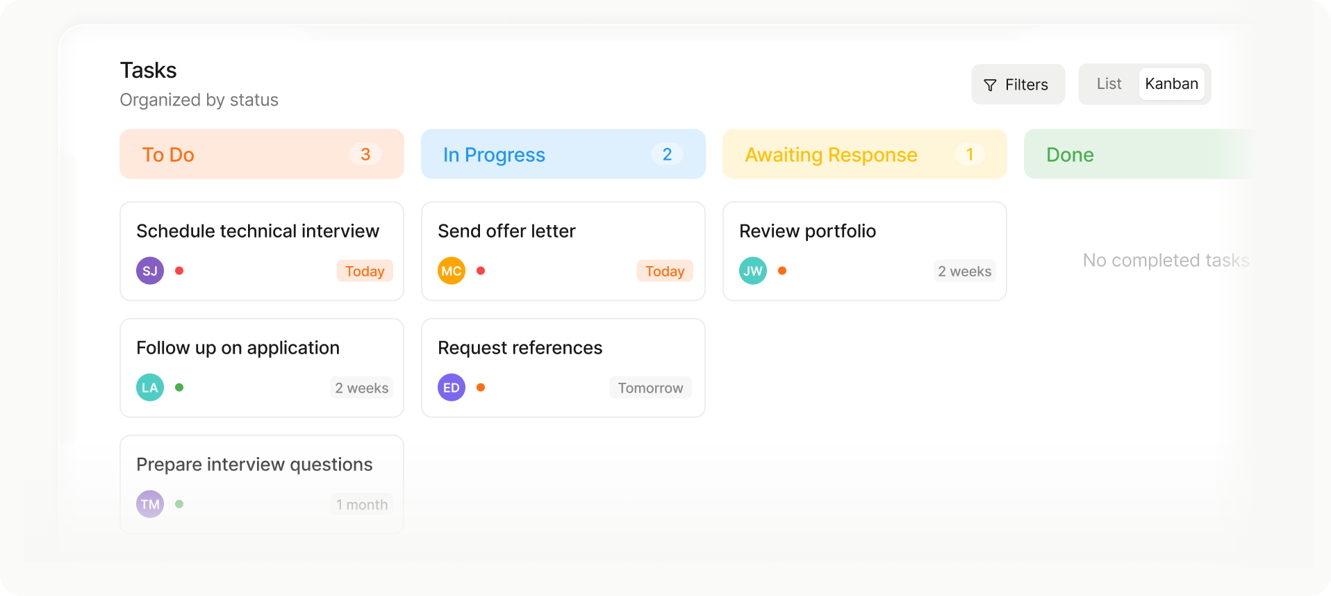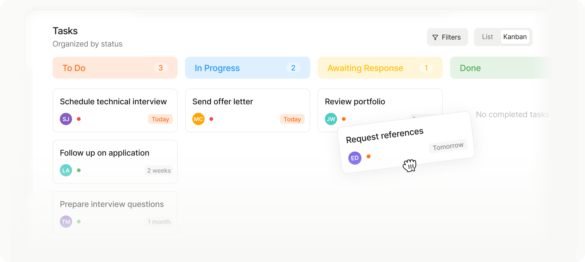 Move candidates or jobs between stages instantly.