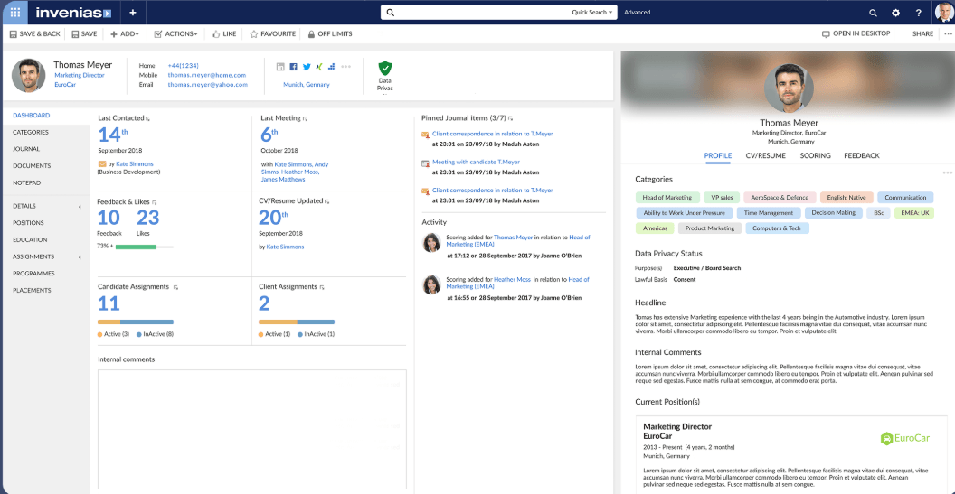 When Bullhorn acquired Invenias we were excited about the potential for some of the Bullhorn features being worked into Invenias, but that doesn't seem to have happened. Compared to AI-powered software for the executive search industry, Invenias is starting to feel dated.